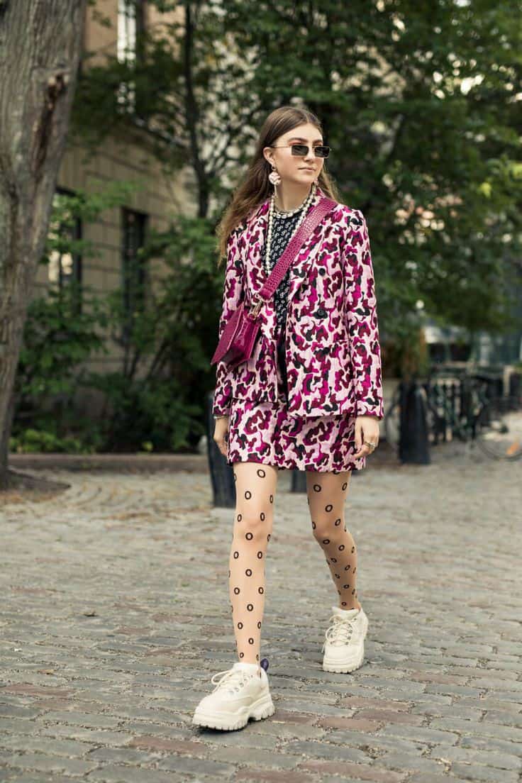Классические клетки, полоски, горошек и цветочные мотивы стали менее распространенными, но они по-прежнему остаются актуальными, хоть и не на пике популярности. Отдельно стоит отметить пэчворк и колорблокинг — это яркие и выразительные решения для кроссовок. Модели с такими принтами безусловно привлекут внимание и станут ярким акцентом в любом образе. По крайней мере, кеды и кроссовки с подобными узорами уже успели появиться на многих модных мероприятиях.