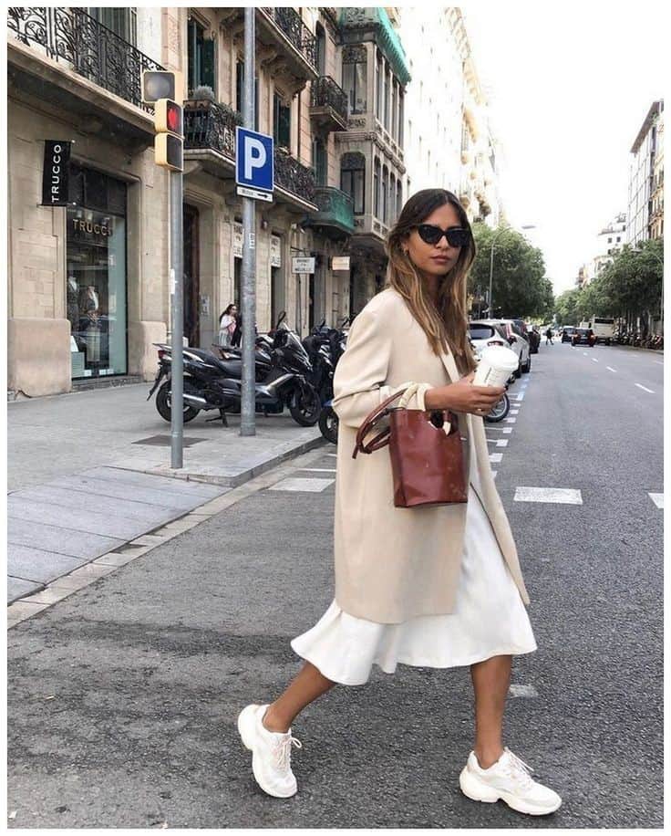 Кроссовки с богатым декором лучше сочетать с простыми нарядами, чтобы акцентировать внимание на обуви. Однако, если вы умеете комбинировать несочетаемое и создавать стилистически сложные образы, смело экспериментируйте. Берите пример с икон стиля street style и известных IT girls.