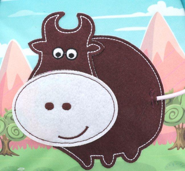 Картон станет основой для деталей бычка. Выбирайте бумагу любого цвета и текстуры, это развивает тактильные ощущения. Лучше использовать клей-карандаш, но подойдет и ПВА. Следуйте этим шагам: