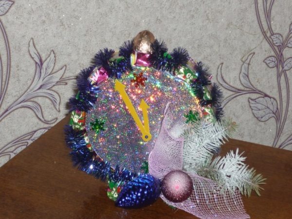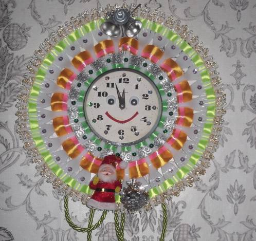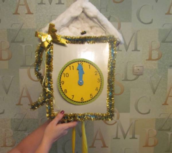 Новогодние часы для детского сада своими руками готовы. Как видите, из простых материалов легко сделать интересные вещицы к празднику.
