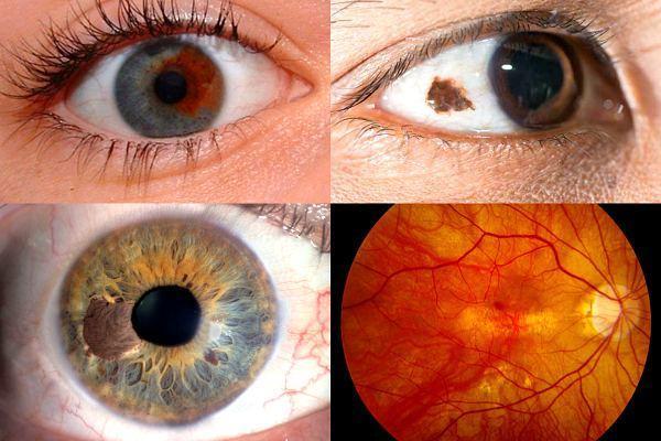 Глазной невус (темные пятна). Это доброкачественное пигментное образование, причины которого различны. Среди них избыточное скопление меланина, генетическая предрасположенность, изменение в гормональном фоне.