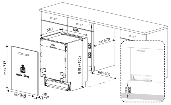 Исходя из месторасположения, различают два типа посудомоечных машин: