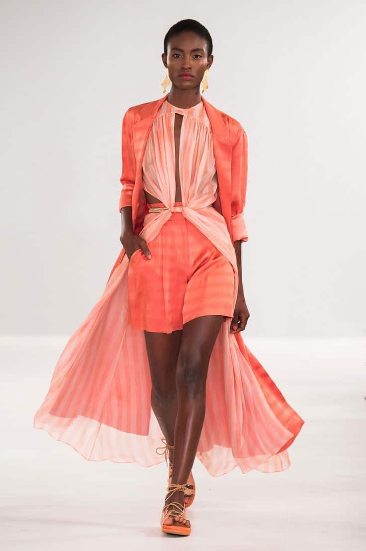 Коралл традиционно занимает ведущие позиции в летнем сезоне. Этот цвет словно создан для теплых дней и отдыха на пляже. Яркий, но в то же время мягкий оттенок прекрасно гармонирует с загорелой кожей. Поэтому коллекции дизайнеров, посвященные весне и лету, буквально переполнены коралловыми платьями и сарафанами из легких тканей, блузками, топами и брюками. Также представлены костюмы, пальто, джинсовые ансамбли, а также стритвир в виде футболок и свободных штанов или комбинезонов.