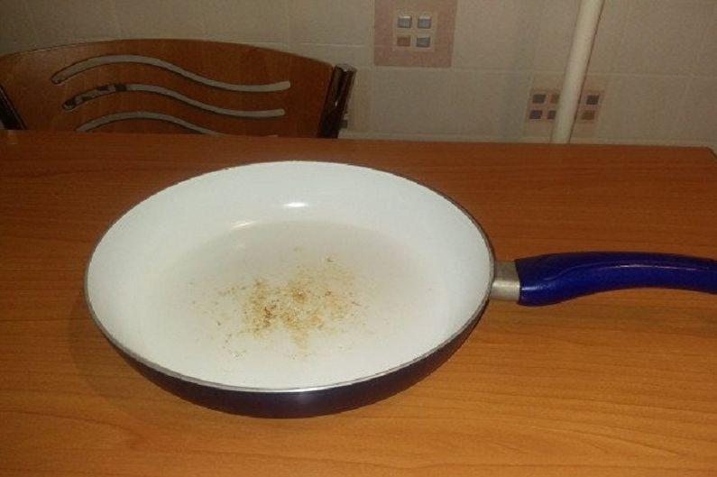 - Тефлоновую сковороду легко почистить, если прокипятить в ней воду с двумя столовыми ложками соды. Вместо соды можно использовать любое моющее средство.