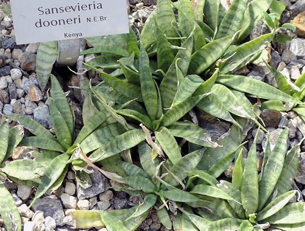Либерийская. Листья расположены горизонтально, что выделяет его среди других сансевиерий.
