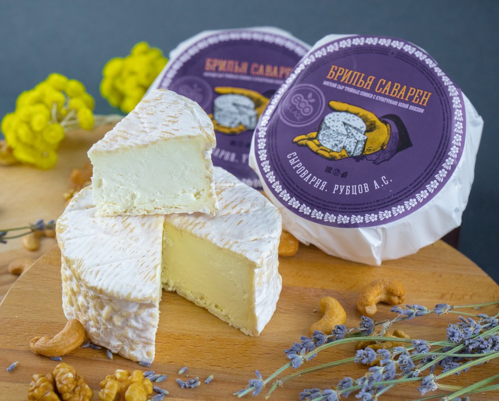 - Брильян-Саварен — нежный белый сыр с кремовым вкусом и молочным ароматом, имеет пенициллиновую корочку и жирность 75%.